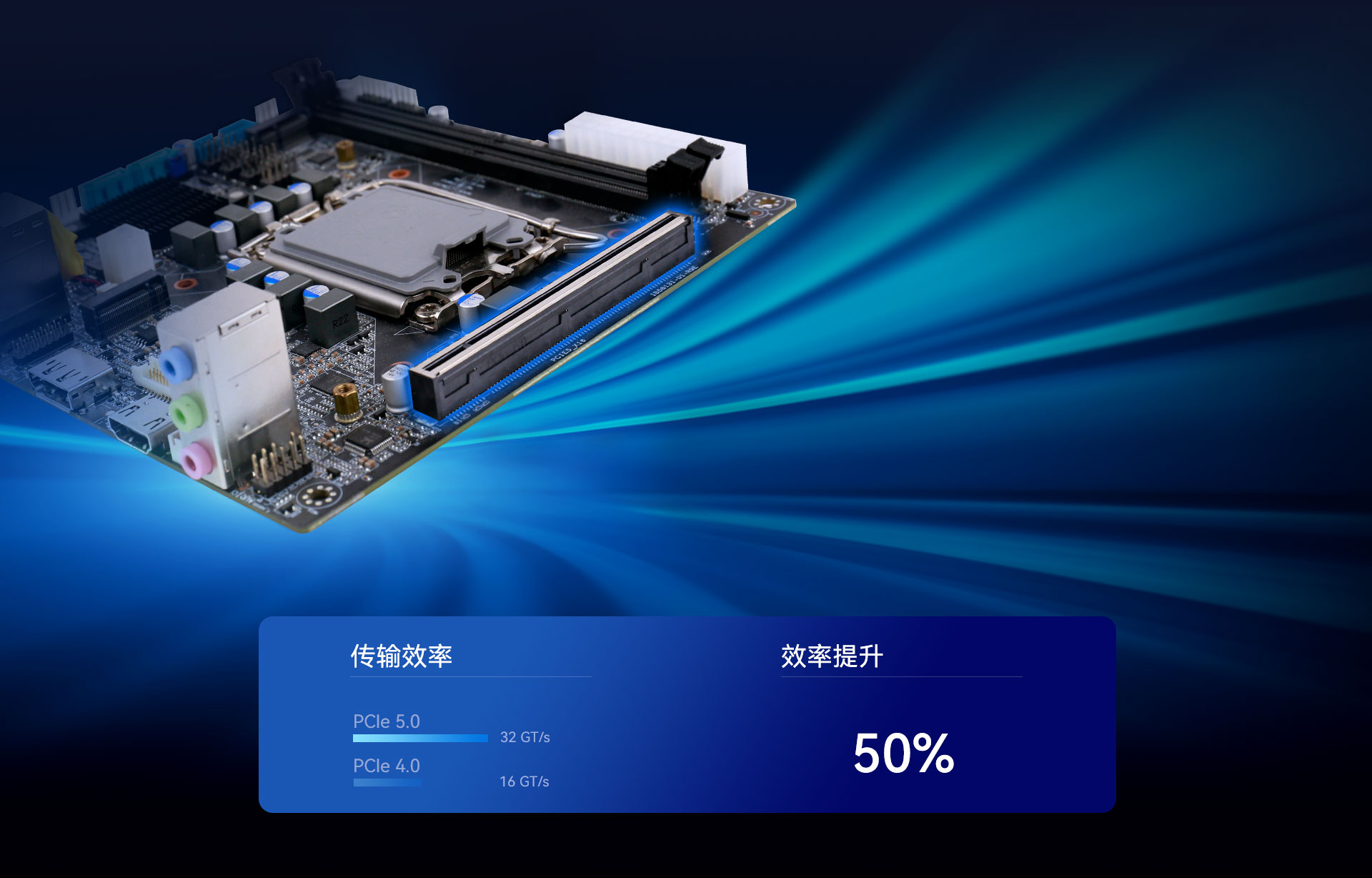 PCIe 5.0 x 16 接口作为 IB5-8131的核心卖点,与上一代PCIe 4.0相比,PCIe 5.0拥有翻倍的带宽与数据传输能力,从64GB/s(16GT/s)一跃至128GB/s(32GT/s),可连接各种高性能显卡,固态硬盘、FPGA卡、AI加速卡等,应用于各种需要快速数据传输的情景,如游戏、内容创作、办公、专业工作站。
