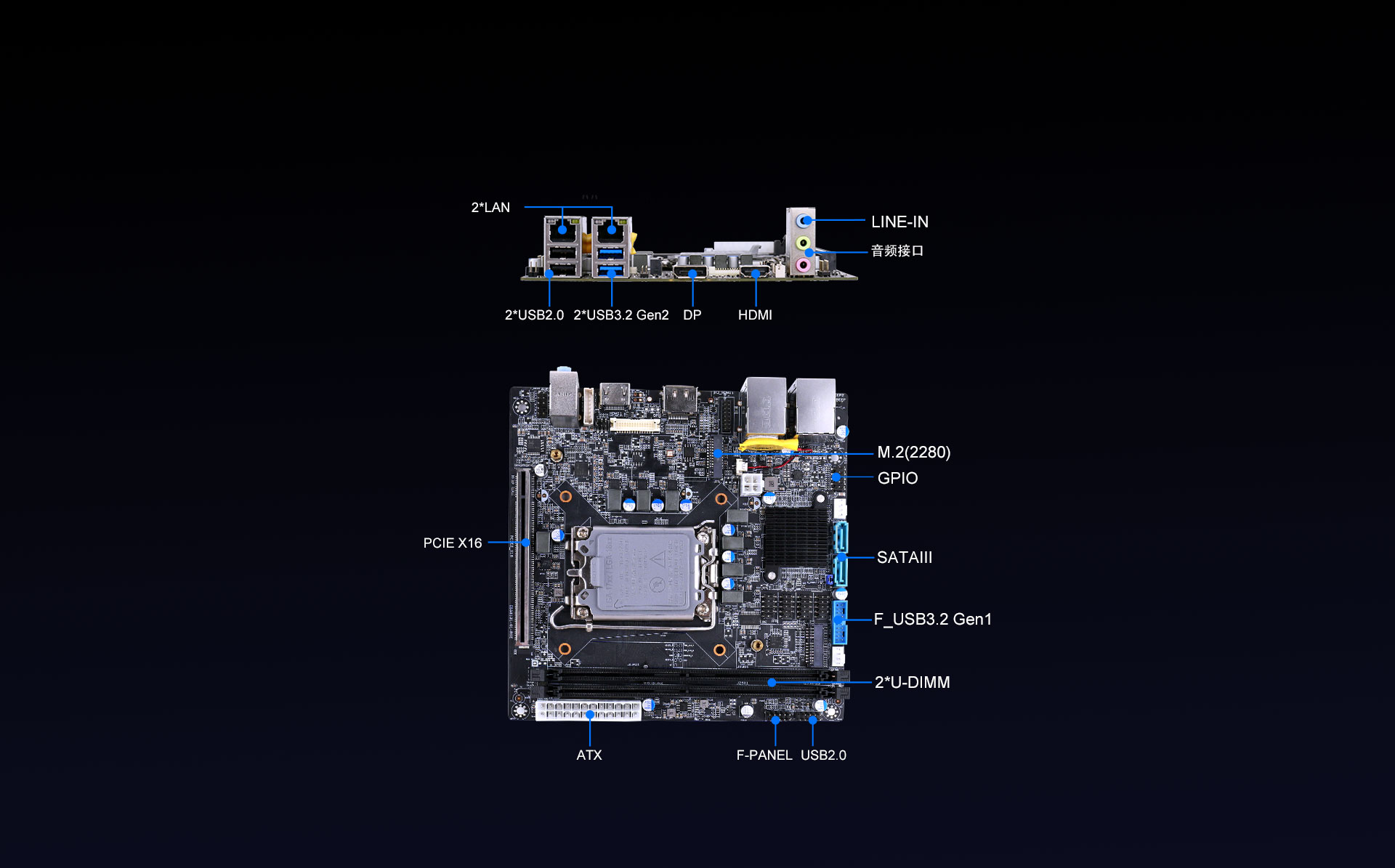 IB5-8131配备了全面的I/O端口阵列,包括USB、HDMI和多个存储接口。支持8K显示,IB5-8131配备了DP以及 HDMI 接口,可提供比4K更细腻的图像质量,保留VGA接口,内部还有双通道24位LVDS插针,HDMI插针,满足客户自定义显示要求。