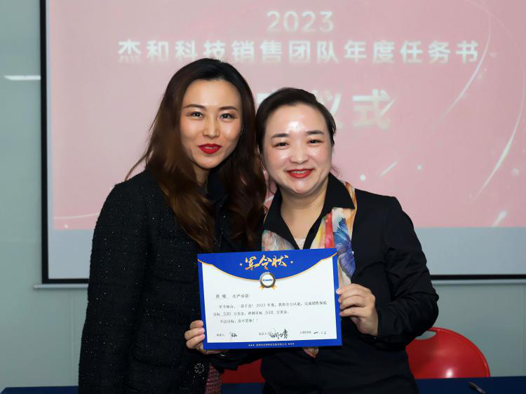 签约仪式中,国际营销中心业务代表刘正文和国内营销中心业务代表李喆发言,两位代表朴实的发言表示,销售人员必须要努力和坚持,要有愚公移山的精神才能成就了2022年的可喜成绩,同时完成2023年度目标必须怀着奋斗者的精神去努力拼搏,2023年南宫NG·28(中国)相信品牌力量业务会冲到前线,紧贴市场,紧贴客户,抢夺订单。